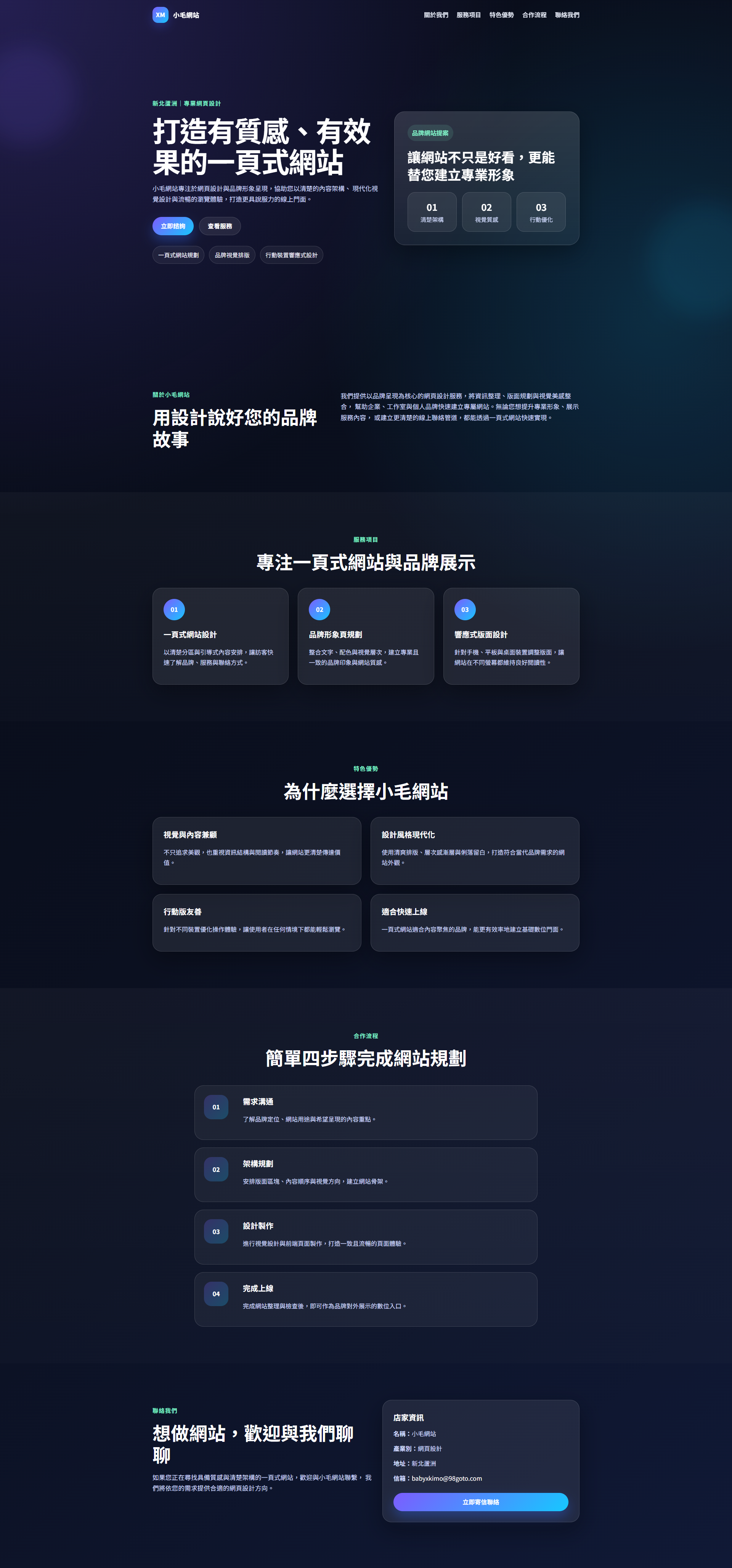 專注於提供快速且便利的一頁式網站AI生成服務,讓每個人都能輕鬆打造專業、現代的專屬網站。